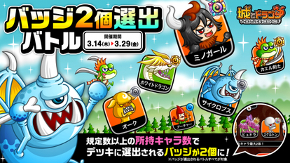 株式会社アソビズム(本社:東京都千代田区、代表取締役:大手智之)は、App Store・Google Playにて好評配信中の『城とドラゴン』で「バッジ2個選出バトル」を2024年3月14日(木)より開催いたします。
