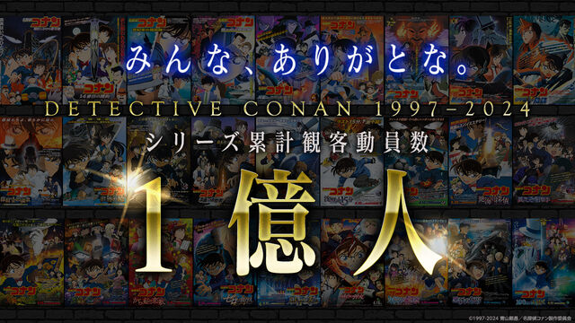1億人という数字は日本の人口にも迫り、まさに"国民的作品"と呼ぶにふさわしい快挙。これを祝して、歴代劇場版の名場面を厳選したメモリアルムービー(https://youtu.be/9tXKqDJ0YBo)がお披露目され、原作者・青山剛昌、江戸川コナン役の高山みなみからのコメントも公開された。