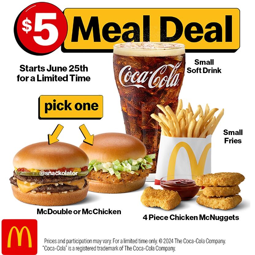 メニューは、マックダブルあるいはマックチキンサンドイッチ、小さめのマックフライポテト、4個のナゲットに少量のドリンクの内容となっている。