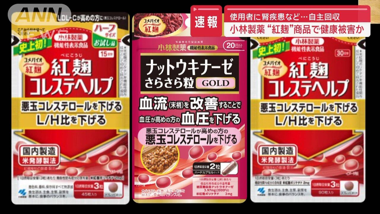また小林製薬は、引き続き被害者や取引先への補償や原因究明などの対応を進めるとしています。(ANNニュース)